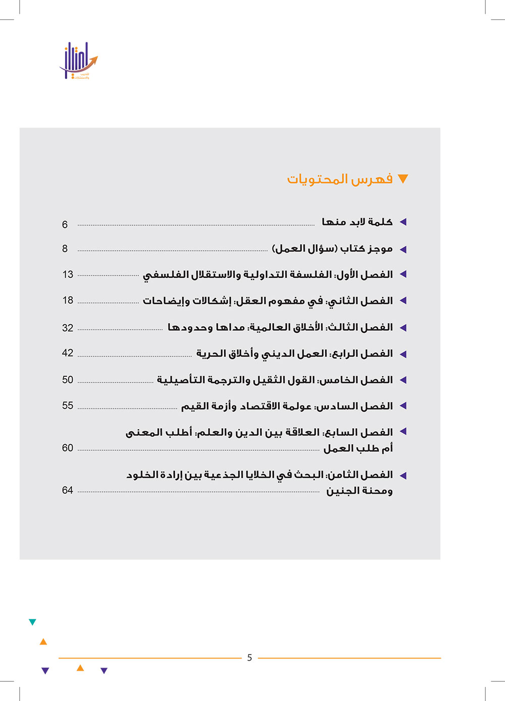 في هذا الكتاب تم استشكال مفهوم مركزي هو "العمل"، وحيث تقرر أنه لا ينفك عن العلم، تم وضع مبادئ أساسية تنظم العلاقة فيما بينهما.