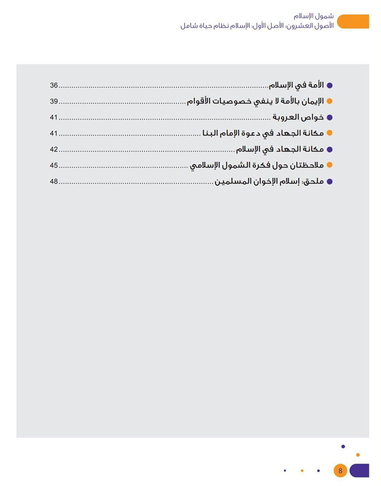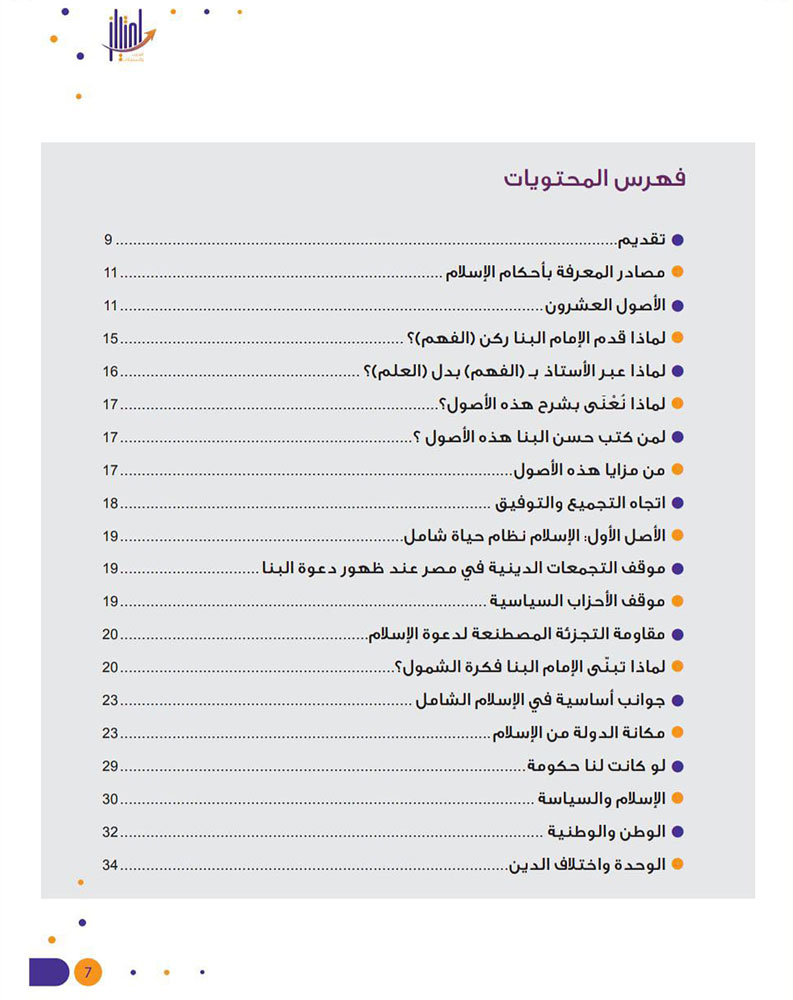 يقدّم الكتاب مقاربة معاصرة وشرحًا وافيًا للأصول العشرين التي بيّنها الإمام حسن البنّا، حيث اهتمّ د. يوسف القرضاوي في شرحه بالتأصيل لكثير من المستجدّات السياسيّة والاجتماعيّة ومقاصد الشريعة، وإظهار عناية الإسلام بالكُلّيّات والقواعد والغاية من ذلك، بغية إيضاح الضوابط والأصول المنهجيّة للتديّن الواعي والفاعل.