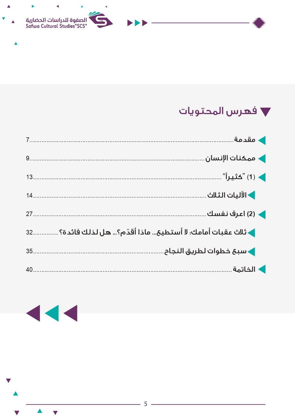 يقدم الكتاب خارطة طريق متكاملة تقول لك: غيّر سلوكك بتغيير قناعاتك، وراجع نظرتك لله وللوجود وقوّمها، واعرف نفسك وما منحك الله من قدرات وستتجاوز العقبات الثلاثة: "لا أستطيع"، "وماذا أقدم؟"، "وما الفائدة".