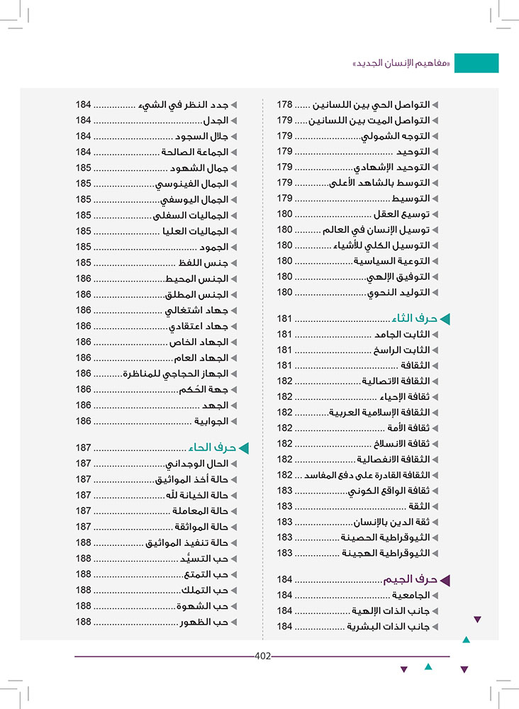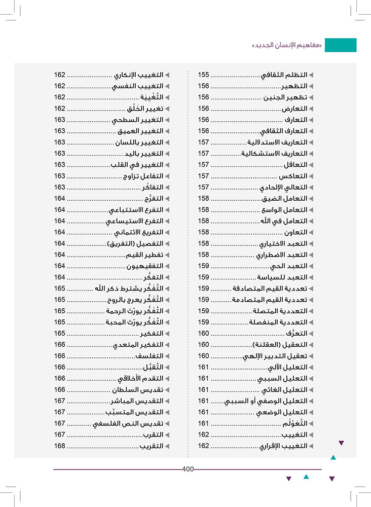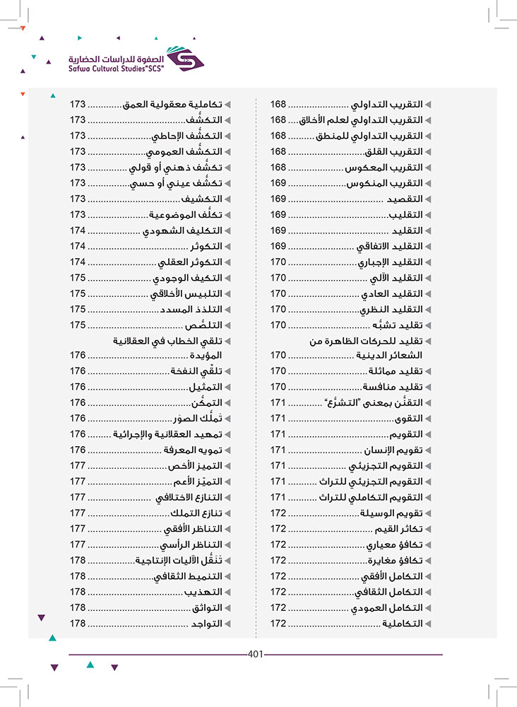 يحتوي المعجم على مفاهيم ومصطلحات طرحها المفكر د. طه عبد الرحمن في مختلف حقول العلوم والمعرفة؛ من فلسفة، وسياسة، واجتماع، وتواصل، وأخلاق.